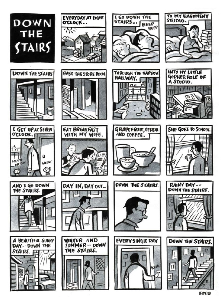 Adapted from the comic Down the Stairs by comics artist Seth.